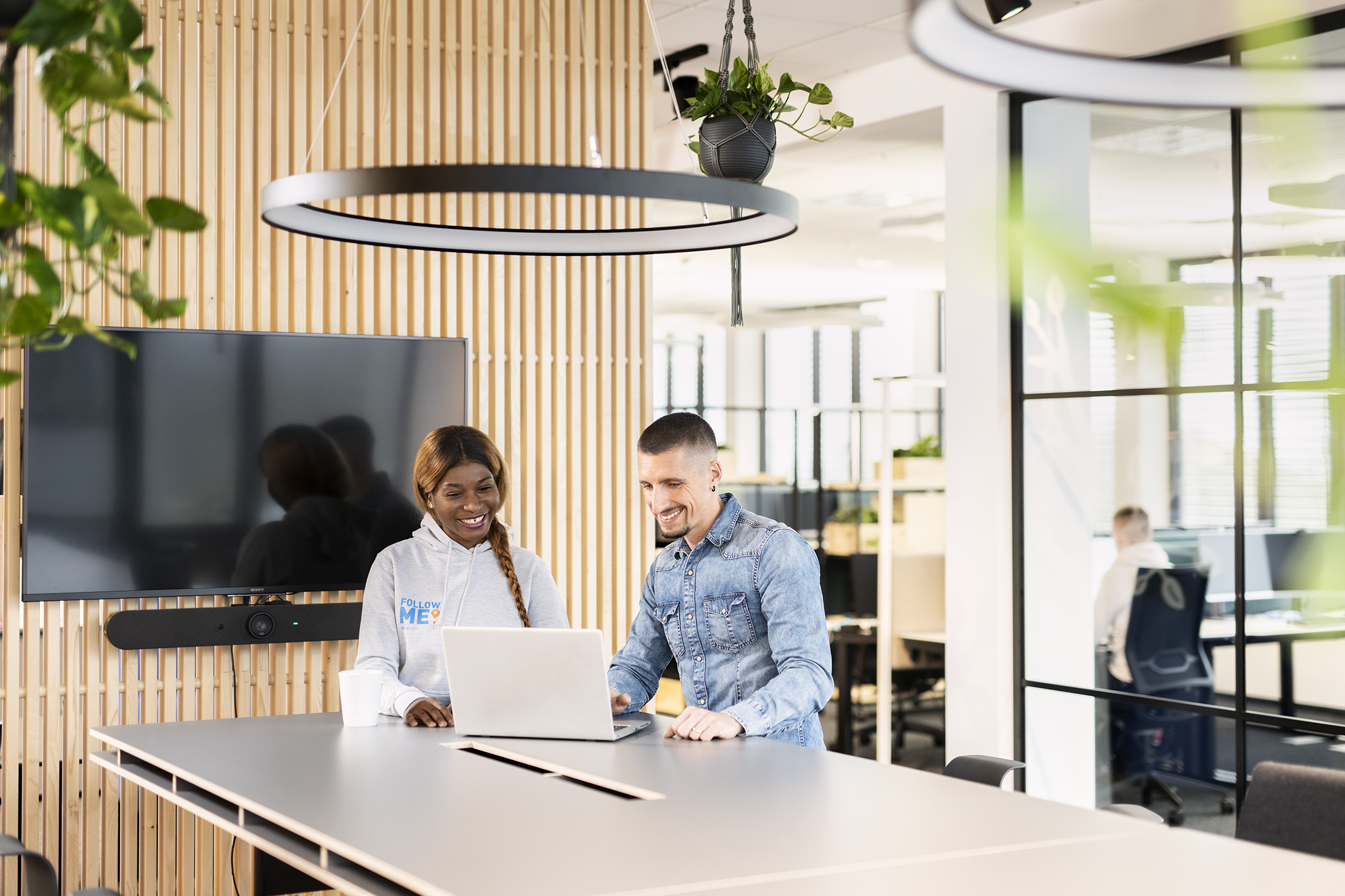 Das Spektrum der blauen und grünen Farben versinnbildlicht die Kulturenvielfalt des Unternehmens.